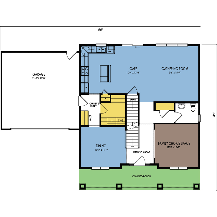 A part of our dream series, the tamarack floor plan features 3 bedrooms and 1.5 bathrooms with a foot print of 44x30 feet and 1342 total square feet of living space.