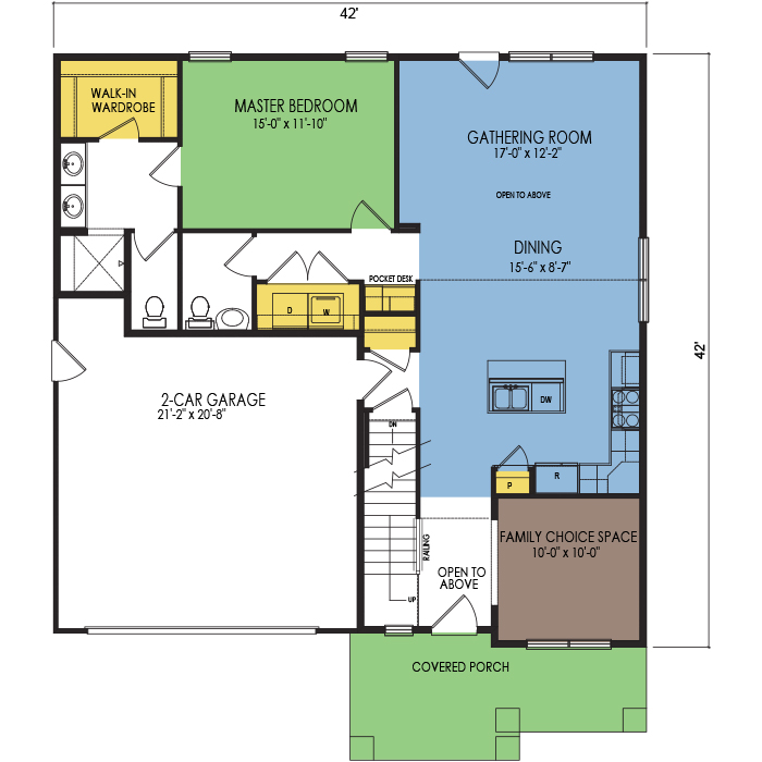 A part of our dream series, the tamarack floor plan features 3 bedrooms and 1.5 bathrooms with a foot print of 44x30 feet and 1342 total square feet of living space.
