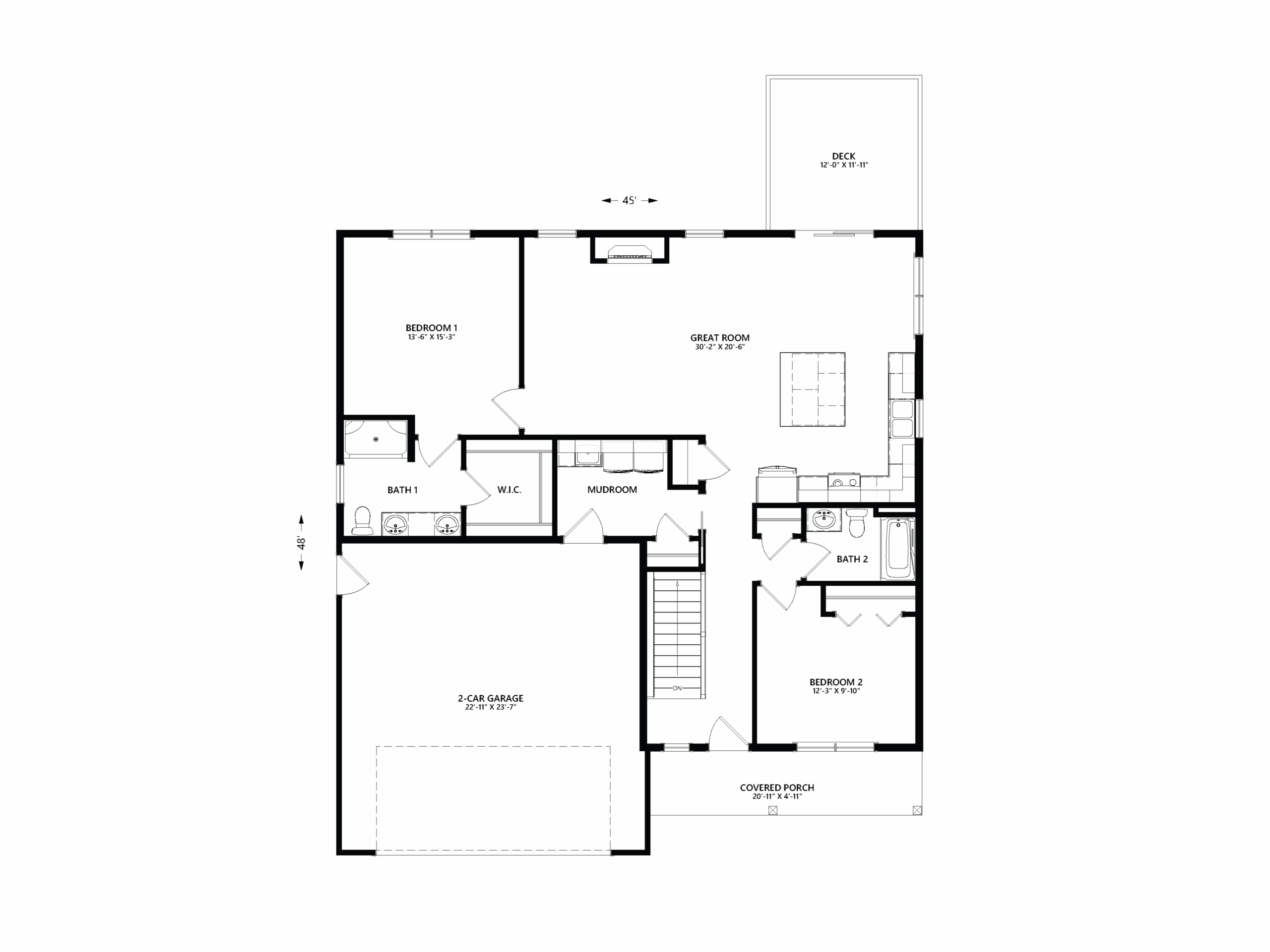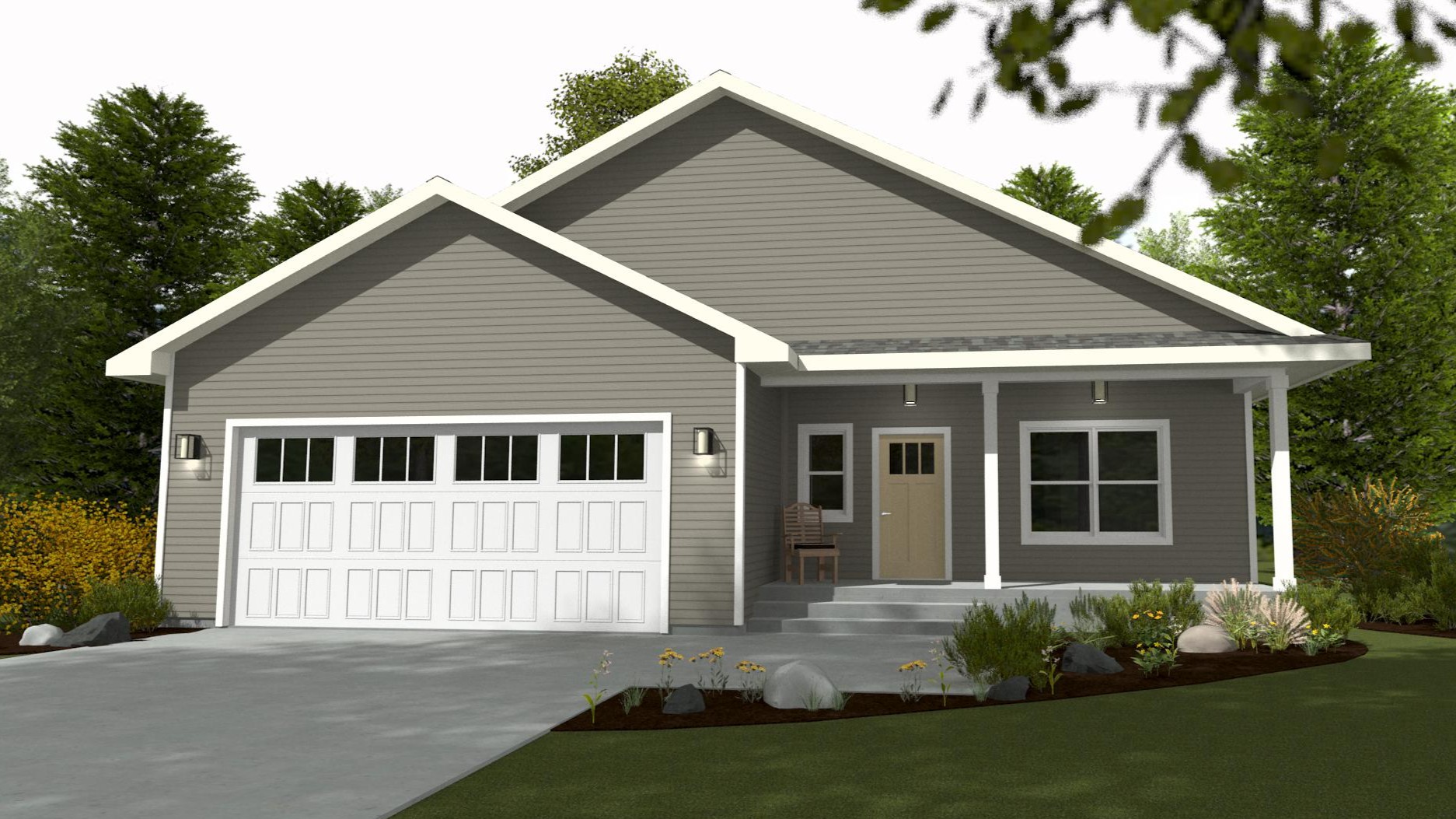 This efficient 2-bedroom, 2-bath ranch features a split-bedroom layout for added privacy. A main floor laundry room is conveniently located off the 2-car garage, and the open staircase leads to an optional full basement for future expansion or storage.