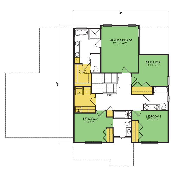 A part of our dream series, the tamarack floor plan features 3 bedrooms and 1.5 bathrooms with a foot print of 44x30 feet and 1342 total square feet of living space.