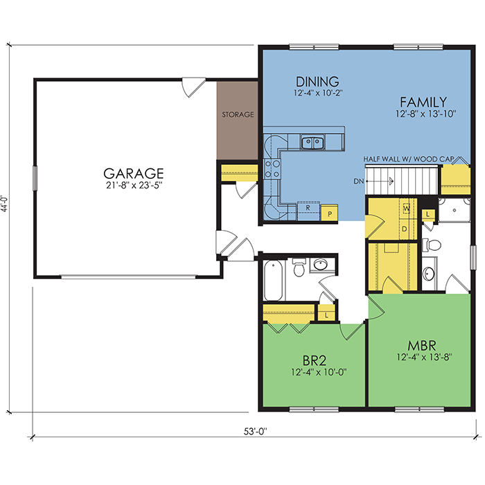 A part of our dream series, the tamarack floor plan features 3 bedrooms and 1.5 bathrooms with a foot print of 44x30 feet and 1342 total square feet of living space.