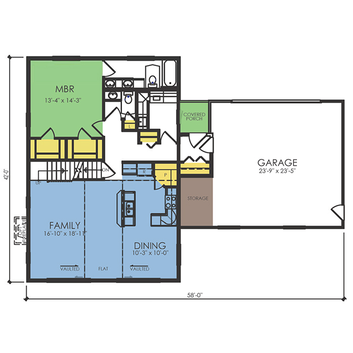 A part of our dream series, the tamarack floor plan features 3 bedrooms and 1.5 bathrooms with a foot print of 44x30 feet and 1342 total square feet of living space.