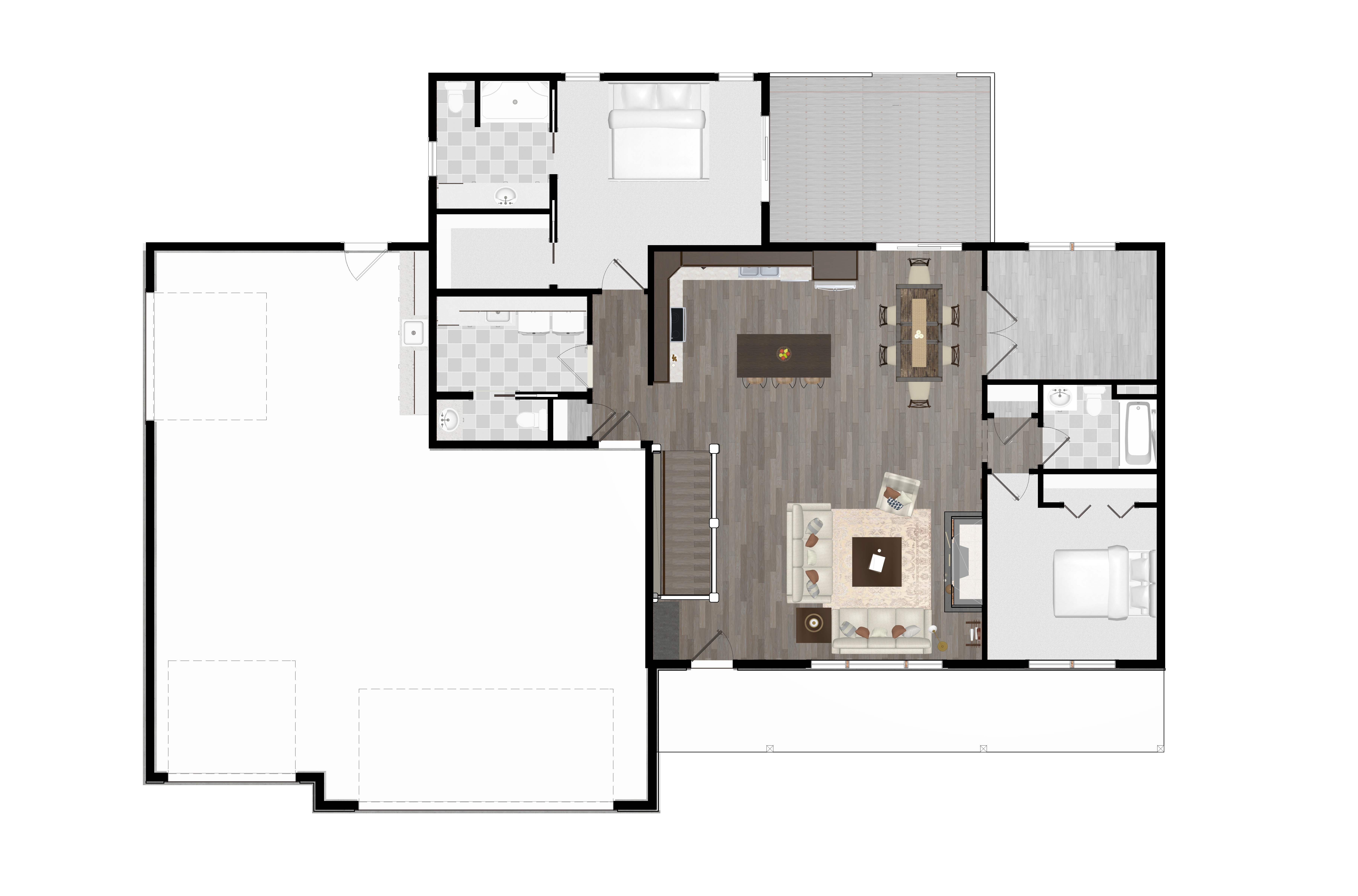 For those who want even more space, an optional finished lower level adds a rec room, wet bar, two additional bedrooms, and a full bathroom - perfect for guests, hobbies, or entertaining.