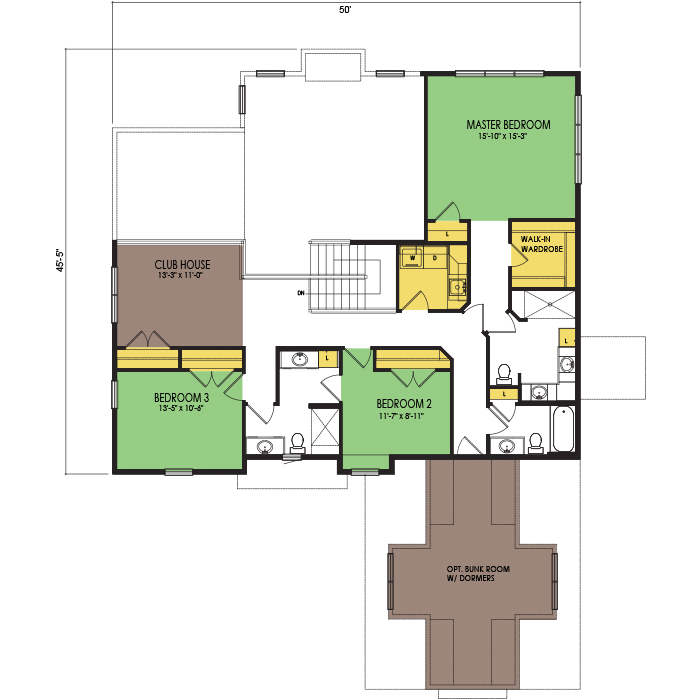 A part of our Vacation Series, the Lac La Croix floor plan features 3 bedrooms and 3.5 bathrooms with a foot print of 50x69 feet and 2900 total square feet of living space. Floor Plan #VL278