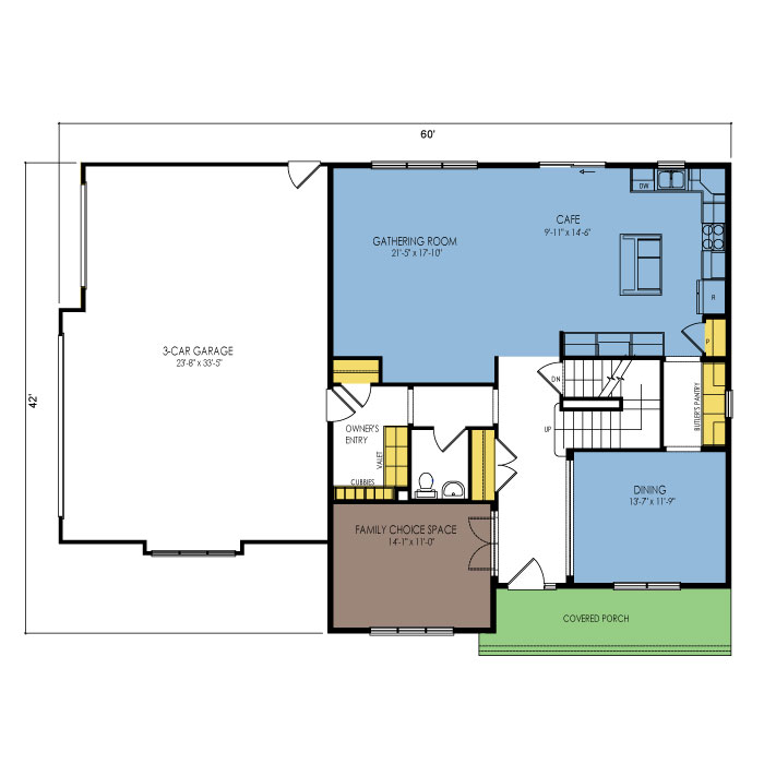A part of our Designer Series, the Sage Valley floor plan features 4 bedrooms and 3.5 bathrooms with a foot print of 60x42 feet and 2856 total square feet of living space. Floor Plan #DN255