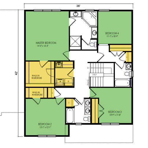 A part of our dream series, the tamarack floor plan features 3 bedrooms and 1.5 bathrooms with a foot print of 44x30 feet and 1342 total square feet of living space.
