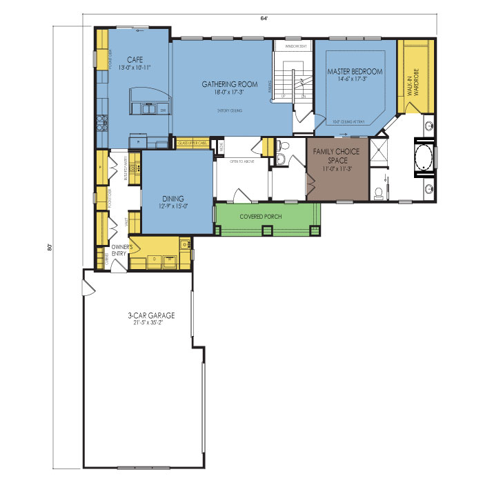 A part of our dream series, the tamarack floor plan features 3 bedrooms and 1.5 bathrooms with a foot print of 44x30 feet and 1342 total square feet of living space.