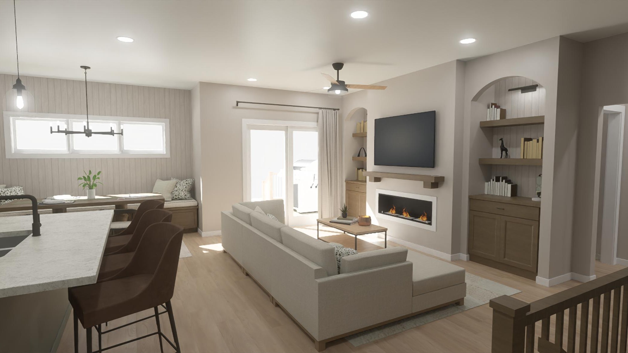 Open-concept living areas create a natural flow between the kitchen, dining, and living spaces, making entertaining and everyday living effortless. Additional customization options allow you to further personalize the home, including adding a back deck, a fireplace with built-in shelving, or a built-in dining nook for added character and comfort.