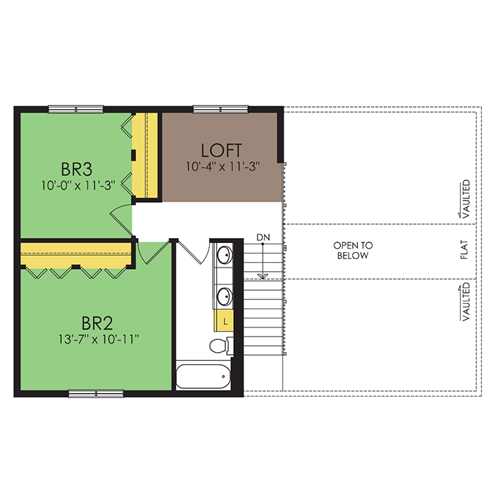 A part of our dream series, the tamarack floor plan features 3 bedrooms and 1.5 bathrooms with a foot print of 44x30 feet and 1342 total square feet of living space.